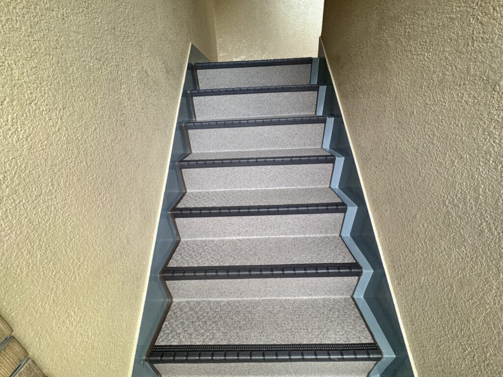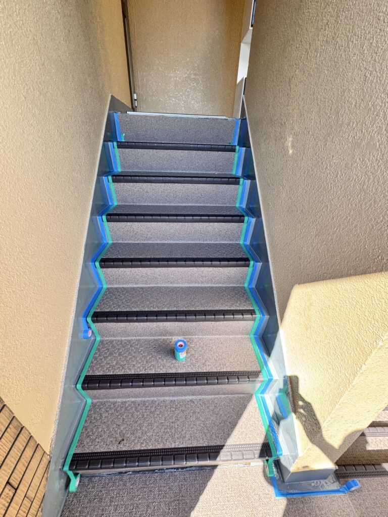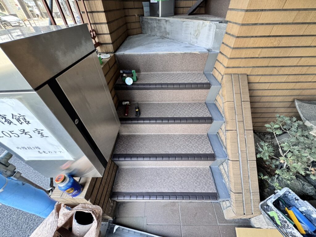 長尺工事というのはあまり聞き馴染みがない方も多いのではないでしょうか?長尺工事とは、主にマンションの廊下や階段に防滑性ビニル床シートである「長尺シート」を貼り付ける工事のことを指します。このシートは、耐久性や防水性、防滑性に優れており、特に共用部分の床の改修や修繕に多く用いられます。