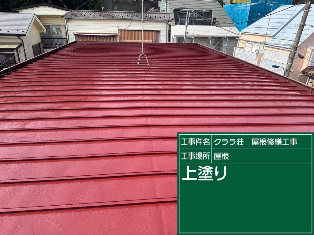 小林工業です。板橋区アパートのクララ荘にて屋根塗装工事を行いました!長年の利用により劣化が進んでおりましたので、ケレン作業(下地処理)から行いました。施工前ケレン作業(下地処理)塗装作業施工後一つ一つ